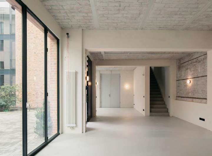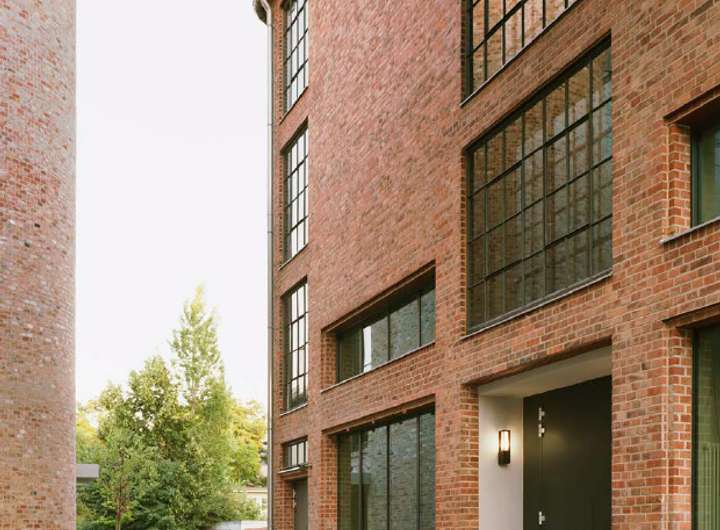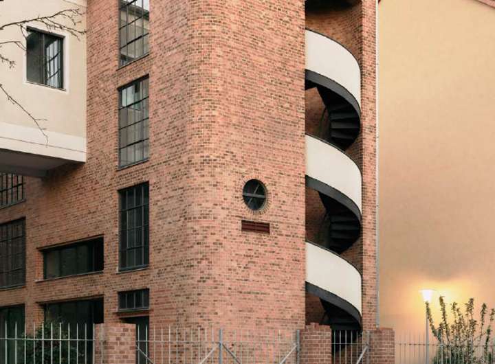 Der elegante Backsteinbau mit der markanten aussenliegenden Wendeltreppe ist ein idealer Ort zum Arbeiten und Wohnen. Die historische Substanz des Gebäudes wurde vollständig saniert und bietet hochwertige, moderne Räume für zeitgemäßes Arbeiten und Wohnen.