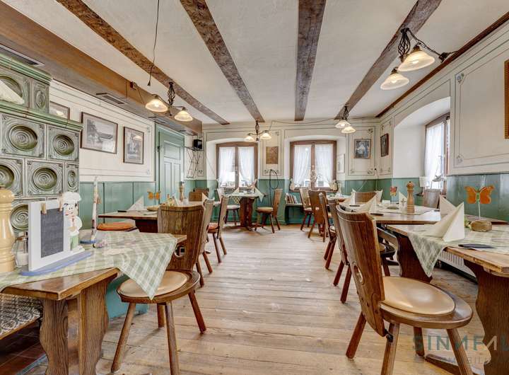 Das geschichtsträchtige Gasthaus besticht durch seinen rustikalen Charme und einladende Atmosphäre. Es verfügt über 2 Gasträume mit Kaminofen, Nebenräumen und Sanitärräumen. Dem Gasthaus angeschlossen ist eine 3 Zimmerwohnung im Obergeschoss, 3 zusätzliche Zimmer werden über einen Laubengang erschlossen. Das Gasthaus wird im September frei, es eignet sich sowohl für eine Fortführung der gastronomischen Nutzung als auch für eine Umnutzung in den privaten Bereich.