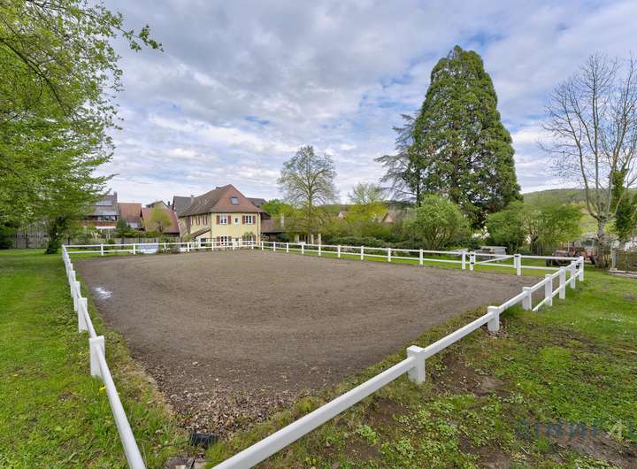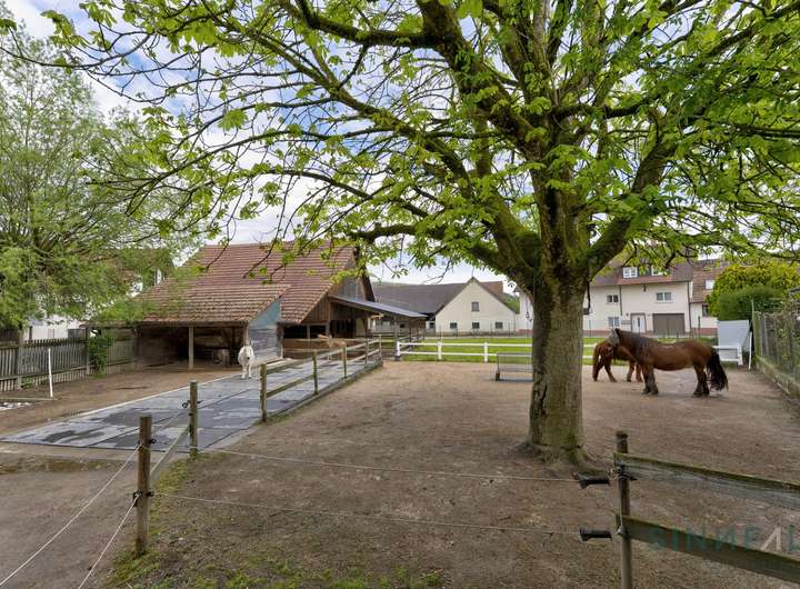 - Die Freiflächen bestehen aus Innenhof, Reitplatz, Paddock, Stallungen, 6 Stellplätze, Garten mit Pool sowie Grünflächen.