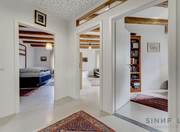 Weitere vier lichtdurchflutete renovierte Wohneinheiten bestechen durch ihre individuellen Zuschnitte. Jede Wohnung wurde mit einem hohen Anspruch an Ästhetik und Funktionalität gestaltet. Besonders hervorzuheben ist die gelungene architektonische Verbindung der bestehenden Struktur mit modernen, hochwertigen Materialien.