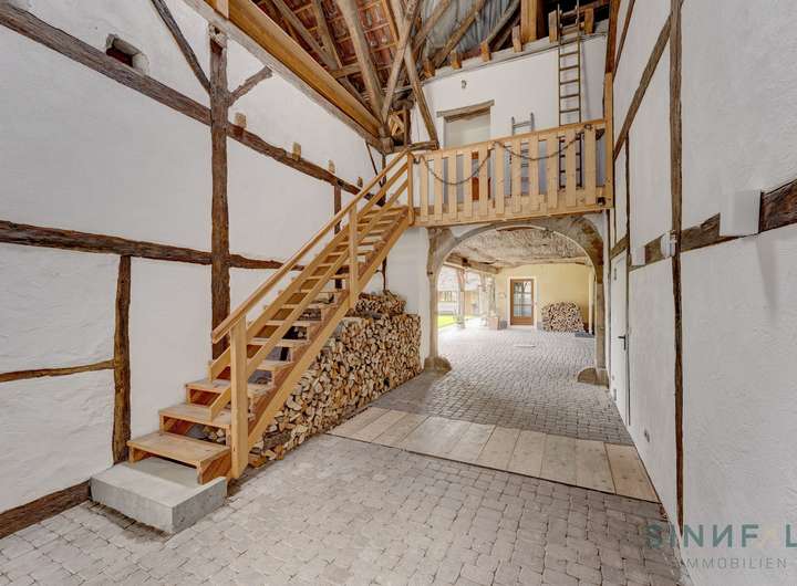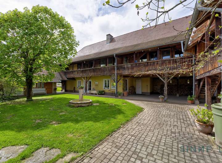 Das Ensemble aus 5 Wohneinheiten, Gasthaus und Nebengebäuden gruppiert sich um einen malerischen Innenhof, inklusive der Freiflächen erstreckt sich das Gelände insgesamt auf imposante 5009 m² mit weiteren Bebauungsmöglichkeiten.