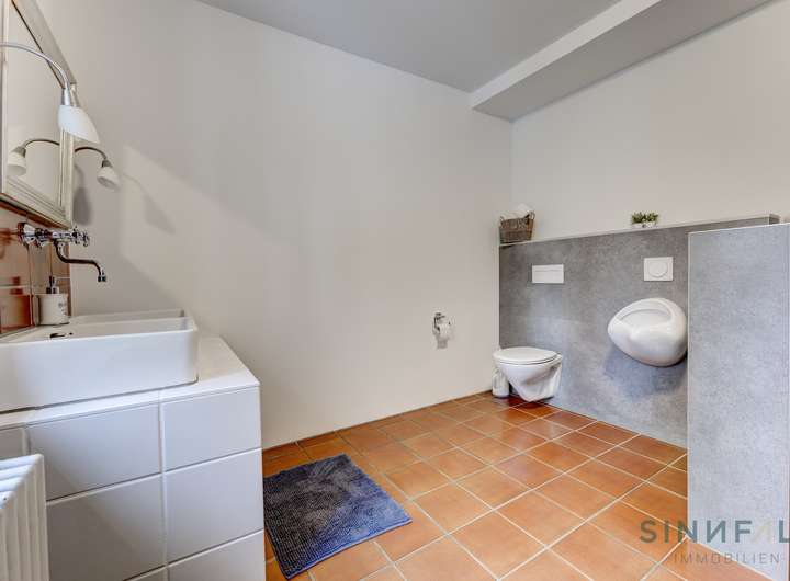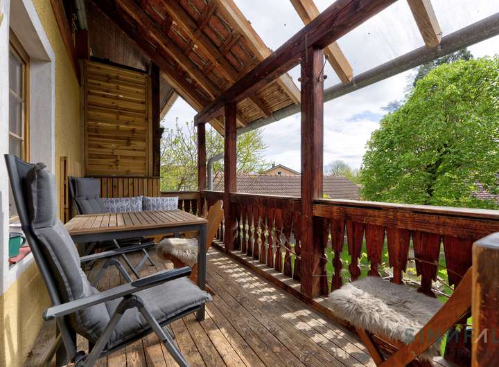 - Wohnung Nr. 2: ca.122 m², im Obergeschoss, 2 Zimmer mit Kachelofen, 1 Bad, Balkon, separater Zugang