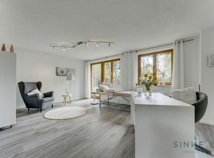 - Wohnung Nr. 1: ca. 216 m² auf 3 Etagen, 4 Zimmer, 2 Bädern, separatem Seminar- und Arbeitsraum sowie Terrasse mit Pool.