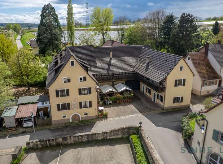 Dieses einzigartige, denkmalgeschützte historische Dreiseitengehöft mit Gasthaus, Wohnungen, Nebengebäuden sowie große Freiflächen befindet sich in Hertingen. Das Anwesen vereint den Charme eines historischen Ensembles mit großzügigen Freiflächen auf 5 Flurstücken. Eine einmalige Gelegenheit für Investoren, Pferdeliebhaber, Visionäre die sowohl Wohnen als auch Arbeiten unter einem Dach verbinden möchten.