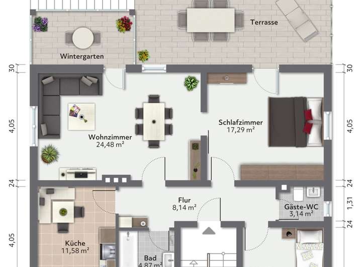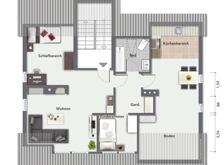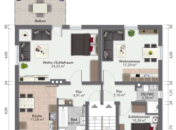 Die Grundrisse sind ggf. nicht maßstabsgerecht. Bei evtl. Einrichtungsgegenständen handelt es sich um Möbelierungsbeispiele. Es ist möglich, dass infolge von vorgenommenen Umbauten die Grundrisse nicht in vollem Umfang den tatsächlichen Gegebenheiten entsprechen.