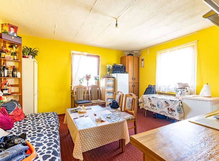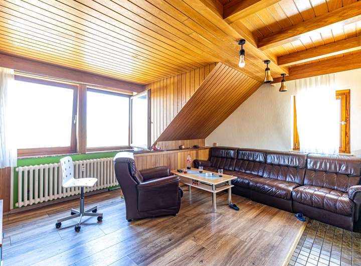 Dieses Objekt ist unterteilt in vier Wohneinheiten. Im Erdgeschoss befindet sich eine ca. 85 m² große Wohnung, welche zu einer NKM von 525,00 € einschließlich Garage vermietet ist. Im Obergeschoss befinden sich zwei Wohnungen, links eine ca. 45 m² große 1-Zimmer-Wohnung mit Badezimmer, Küche und zwei Balkonen, welche zu einer NKM von 270,00 € vermietet ist. Rechts befindet sich eine ca. 35 m² große 2-Zimmer-Wohnung mit Schlafzimmer und Wohnküche sowie separatem Duschbad, welche zu einer NKM von 220,00 € vermietet ist. Das Dachgeschoss beherbergt die letzte Wohnung mit einer Größe von ca. 65 m² unterteilt in einen großen Wohn-Ess-Schlafbereich, ein kleines Kinderzimmer und Badezimmer sowie eine gemütliche Küche, welche zu einer NKM von 340,00 € vermietet ist.