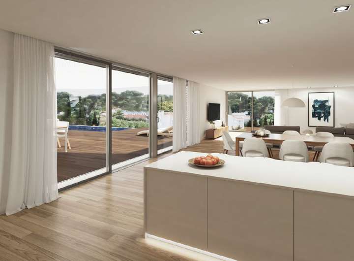 Ein privater Pool mit einer weitläufigen Sonnenterrasse und eine Doppelgarage komplettieren dieses Angebot.