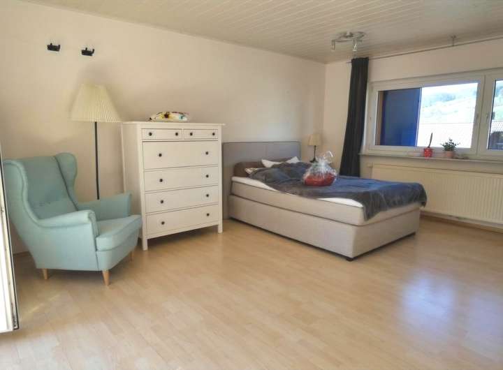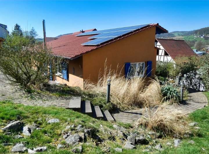 Dieses interessante Objekt bietet Ihnen viele Möglichkeiten. Das große und modern gestaltete Einfamilienhaus bietet Ihnen ca. 163 m² Wfl. auf einer Etage. Das Haus wurde in zwei Bauabschnitten in 1966 und 2003 in massiver Bauweise und in 2. Baureihe erstellt. Die Gebäudehülle ist bereits (wo notwendig) gedämmt, die Kunststofffenster 2-fach-verglast. Der sehr großzügige Wohn/Essbereich mit über 65 m² und die angrenzende Küche mit über 23 m² werden Sie begeistern. Vom Wohnbereich gelangen Sie direkt auf eine höher gelegene Terrasse mit Außengrill und Gartenhütte. Vor der Küche befindet sich ebenfalls eine sonnige Terrasse. An kalten Winterabenden können Sie Ihre Feierabende vor einem gemütlichen Kaminofen genießen. Zum Schlafen stehen Ihnen 3 Zimmer, eines davon mit direkt angrenzendem Wannenbad und ein separates Duschbad zur Verfügung. Im Kellergeschoss darunter befindet sich ein praktischer Hauswirtschaftsraum, ein Kellerbereich sowie der Heizungsraum und eine Garage. Weitere 2 PKW-Stellplätze befinden sich auf dem Hof vor dem Haus. Das Haus ist teilweise noch möbliert (Einbauküche, Wohnzimmerwand, Sofa, etc.). und soll ungeräumt übergeben werden. Das noch vorhandene Mobiliar und eine PV-Anlage auf dem Dach werden mit verkauft und sind im Kaufpreis enthalten.