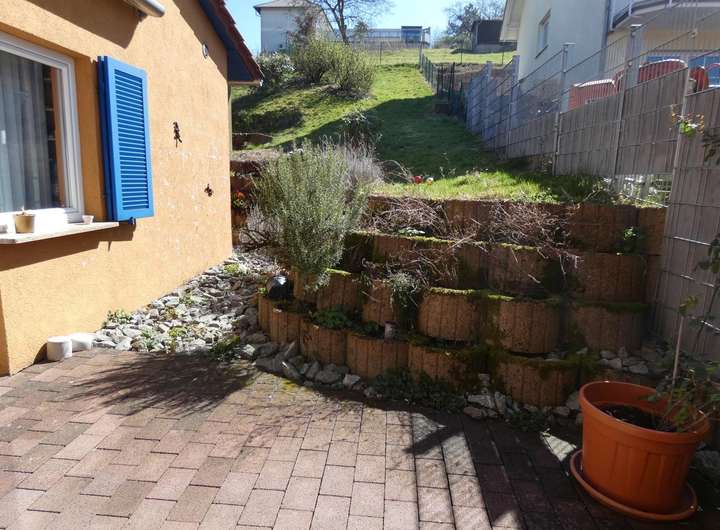 - großes Wohn/Esszimmer mit ca. 65 m² Wfl. und Zugang zu einer höher liegenden Terrasse