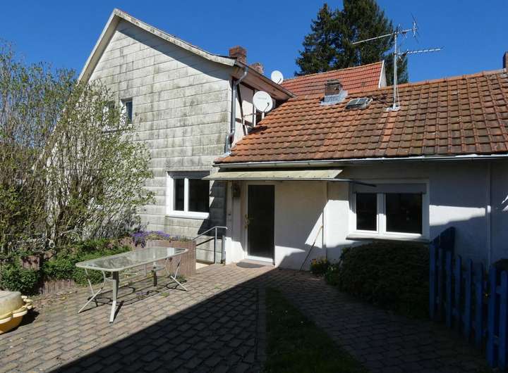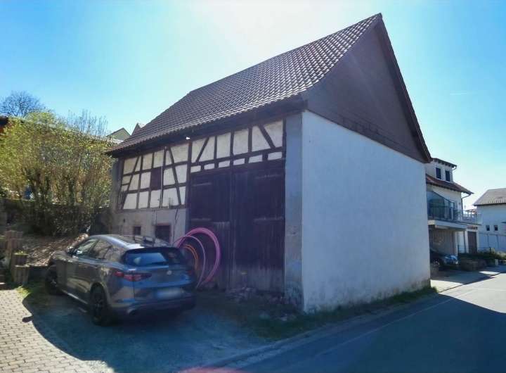 Eine ältere Doppelhaushälfte (Fachwerkgebäude Baujahr vermutlich 1826) im vorderen Bereich an der Straße bietet eine 3-ZKB-Wohnung und ca. 73 m² Wfl. mit einfacher Ausstattung und ist aktuell für 450,- € kalt vermietet. Dies kann Ihre Finanzierung gut unterstützen. Platz für Ihre Hobbys oder weiteren Abstellraum bietet eine ca. 70 m² große Scheune ebenfalls im vorderen Bereich an der Straße.
