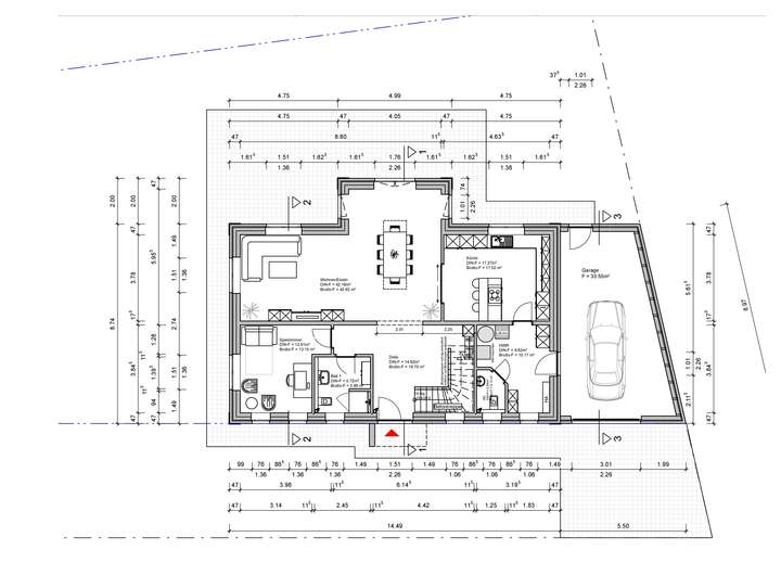 • Garage mit 40 m², gedämmt und verkleidet mit HPL-Platten