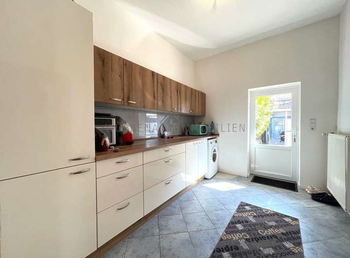 Ein besonderes Highlight ist der gemütliche Wintergarten, der ganzjährig eine helle und einladende Wohlfühlatmosphäre schafft. Ob bei geöffneten Fenstern im Sommer oder bei angenehmer Wärme im Winter – dieser Bereich lädt zum Entspannen und Verweilen ein.