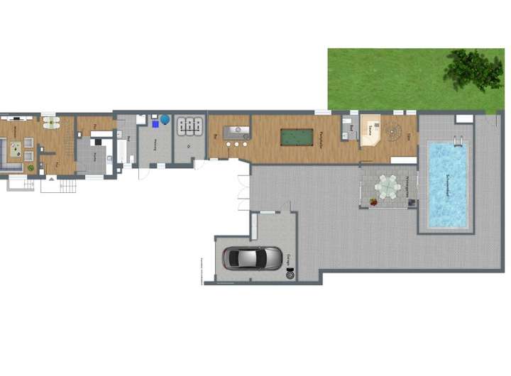 Es gibt viel Platz in diesem Einfamilienhaus mit großem Anbau, Schwimmbad und Sauna.