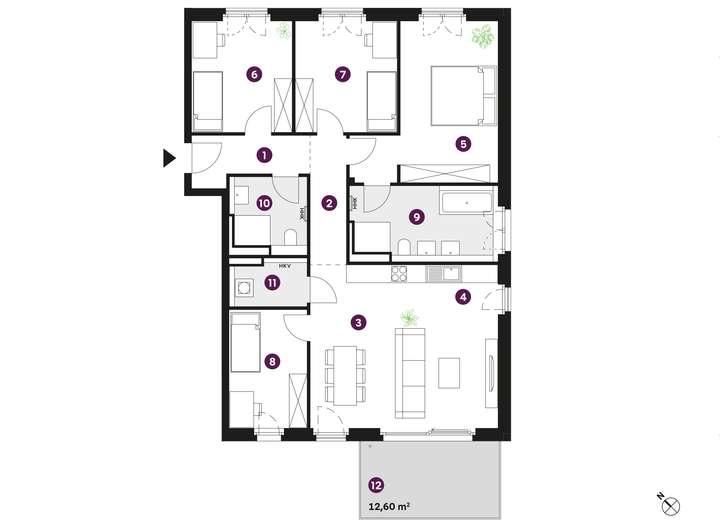 • Individuell steuerbare Fußbodenheizung in jedem Raum, der größer als 6 m² ist