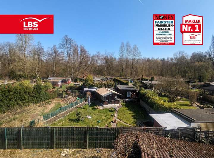 Der rückwärtige Teil des Grundstücks ist aktuell als Gartenland (Schrebergärten) verpachtet und bietet langfristige Entwicklungsmöglichkeiten oder Freizeitflächen.