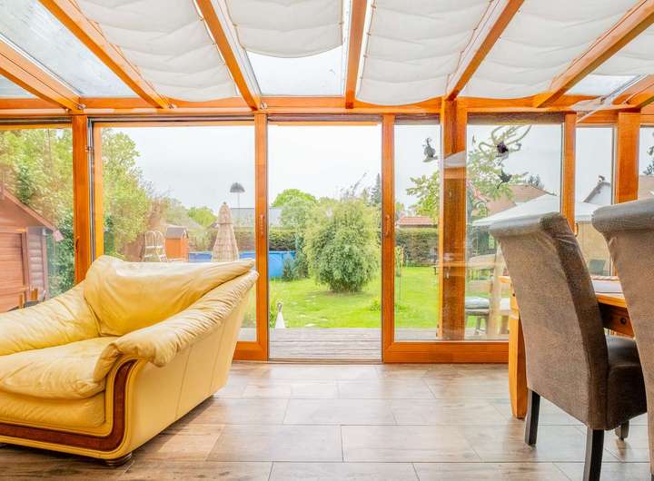 Ein besonderes Highlight ist der geräumige und beheizbare Wintergarten, der sich am Ende des Flurs befindet. Beheizt wird das Objekt mittels Luft-Luft-Wärmepumpen. Die Warmwasseraufbereitung erfolgt über einen Durchlauferhitzer. Im vorderen Grundstücksbereich befinden sich ein PKW-Außenstellplatz, ein Carport sowie zwei Nebengebäude. Eines der Nebengebäude ist als Hobbyraum mit Waschmaschinenanschluss ausgebaut, das andere wird als Garage mit zusätzlichem Stauraum genutzt. Der hintere Grundstücksbereich bietet mit einem Pool und dem liebevoll angelegten Garten einen ideale Rückzugsort für Erholung und entspannte Stunden im Freien.
