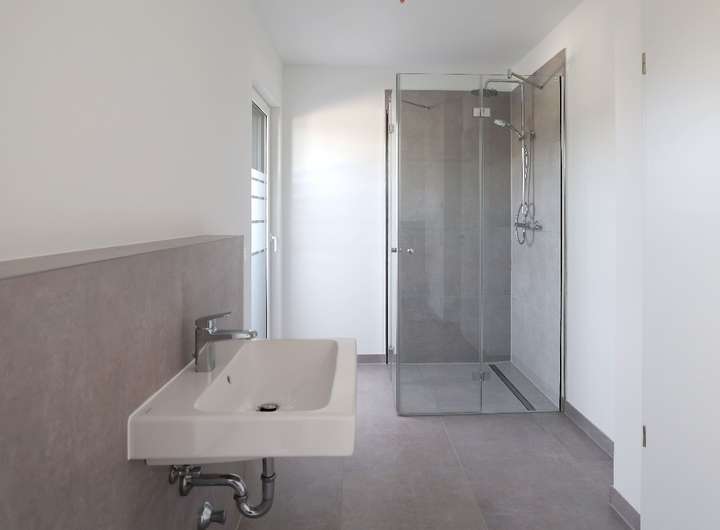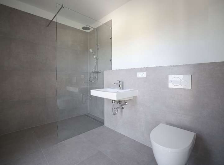 • 1 modernes Bad (Fliesen 120 x 60 m²) mit großzügiger bodengleicher