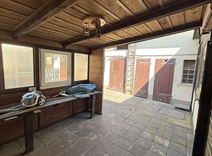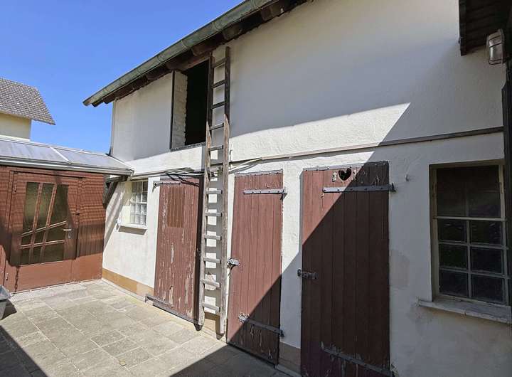 Unter anderem gehört ein Nebengebäude (ehemalige Scheune/Werkstatt) zum Anwesen, dessen Ausbaumöglichkeiten geprüft werden können. Auch das nicht ausgebaute Dachgeschoss birgt Potenzial, z. B. für ein modernes Studio. Beide Wohneinheiten sind derzeit leer und bieten Ihnen die Möglichkeit, das Haus nach Ihren Vorstellungen zu gestalten.