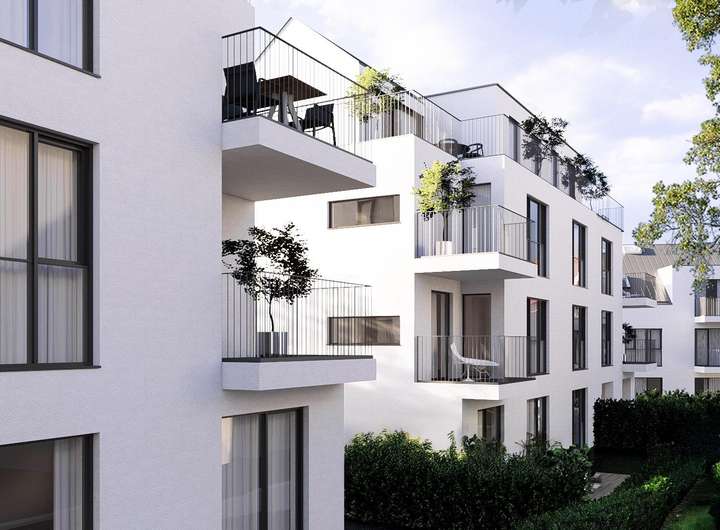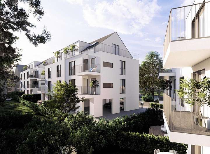 Sie haben die Auswahl zwischen Erdgeschosswohnungen mit fest zugeordneten Gärten oder Wohnungen mit großzügigen Balkonen und Dachterrassen. Optional besteht die Möglichkeit einen ebenerdigen Tiefgaragenstellplatz zu erwerben.