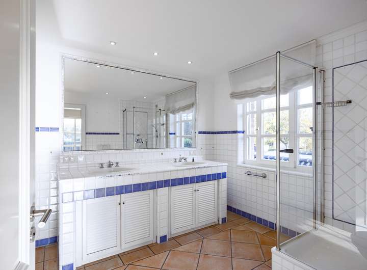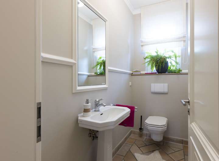 Die Küche ist mit einer modernen, weißen Landhausküche ausgestattet und wurde erst vor 7 Jahren verbaut. Von der Küche gelangen Sie in einen Garderoben-/ Vorratsraum mit Zugang zur Garage, damit Sie nach einem Einkauf bequem alle Vorräte ins Haus bringen können. Neben der Küche befindet sich das großzügige Esszimmer, welches auch über einen offenen Zugang mit der Küche verbunden ist. Im Obergeschoss befinden sich 2 große Kinderzimmer und ein Kinderbad sowie ein gartenseitig ausgerichtetes Masterschlafzimmer mit en suite Bad und Terrasse.
