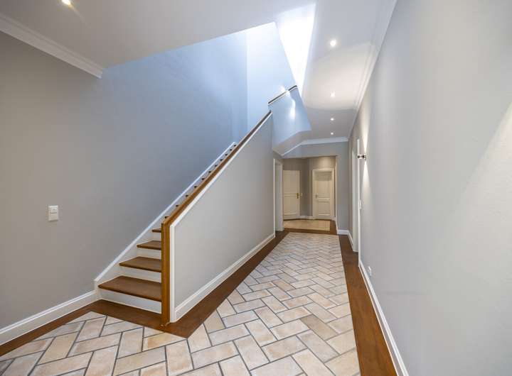 Alle Türen und Zargen wurden ca. 2016 erneuert. Die Holzsprossen-Fensteranlagen sind aus Holz und verfügen über eine Pilzkopfverriegelung. Alle Etagen verfügen über eine Fußbodenheizung die über Raum-Thermostate gesteuert wird. Im Erdgeschoss wurden die Bodenbeläge vor ca. 7 Jahren erneuert.