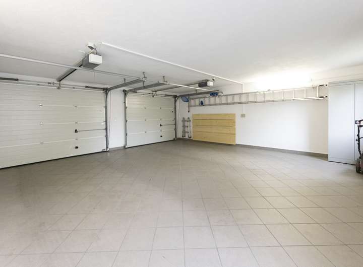Zum Haus gehören zwei Garagen. Eine Doppelgarage befindet sich am Ende des Grundstückes und verfügt über einen Zugang zum Garten. Die zweite Garage befindet sich links neben dem Haus und bietet einen direkten Zugang zum Haus.