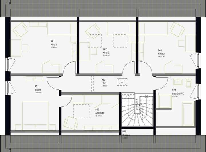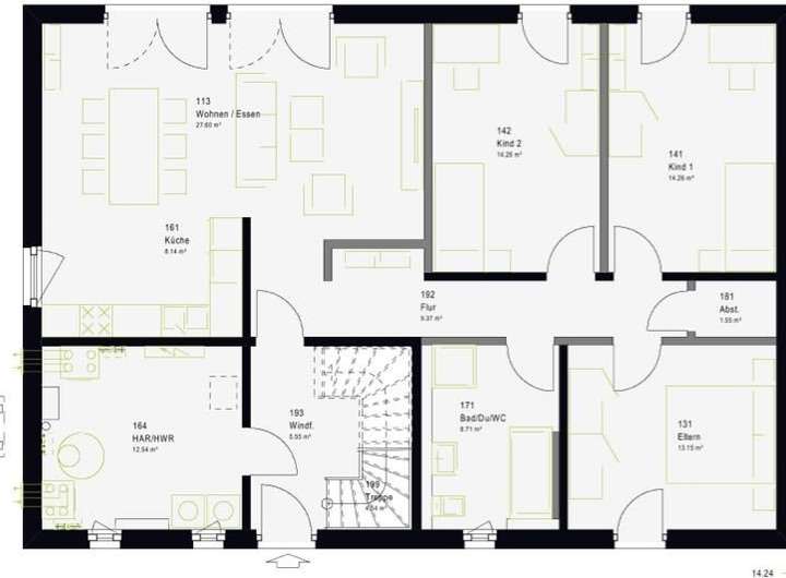 Das Haus wird als reines Ausbauhaus ohne enthaltenes Innenausbaumaterial geliefert. Sie erhalten den fertig erstellten Rohbau mit bereits montierter Gebäudehülle - inklusive Dach, Fenstern und Haustür. Den weiteren Innenausbau planen und realisieren Sie komplett nach Ihren individuellen Vorstellungen - mit eigenen Gewerken oder in Eigenleistung.