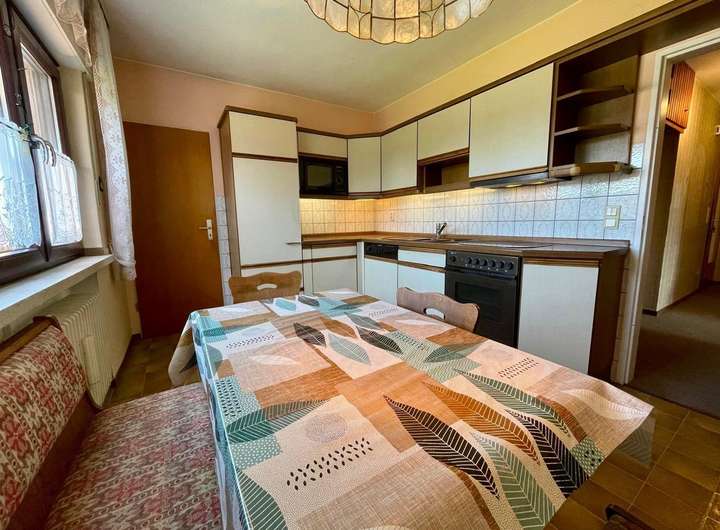 Balkon, Terrasse, Garten, Keller, Duschbad, Gäste-WC, Parkett, Teppichboden, Fliesen Bemerkungen: Renovierungszustand: OG: Ist komplett renoviert (vermietet) EG / KG: Die Immobilie wurde immer sehr gut gepflegt, ist teilw. renoviert, könnte jetzt aber ggf. von innen leicht renoviert werden. Alle Fenster in Richtung Westen wurden schon erneuert (Wetterseite), alle anderen sind i.O.. Die Dachfenster sind auch neu. Ein Kellerfenster (das im Souterrain) müsste ausgetauscht werden, dieses könnten wir auf Wunsch noch veranlassen. Das Dach wurde in 2025 zusätzlich gedämmt (kann mit Rechnung belegt werden), dieses ist im Energieausweis noch nicht berücksichtigt. D.h. der tatsächliche Energiewert vom Haus ist besser als der Energieausweis. Ausstattung: - Dachdämmung 2025 - Fassadendämmung vorhanden - Massive Garten-Laube - Rollläden (alle Fenster) - Bodenbeläge: u.a. Parkett - Große Abstellräume im Keller - Optional ist auch ein Gasanschluss vorhanden - DSL vorhanden, Glasfaser möglich - Heizkessel 2003 erneuert (Niedertemperaturkessel, welcher NICHT von der Austauschpflicht betroffen ist), d.h. die Heizung darf weiter betrieben werden. Zusammenfassung: - Das Haus steht nach Absprache per sofort frei zur Verfügung - großer Garten - voll unterkellert - Keller teilw. zu Wohnzwecken ausgebaut - 1 Garage, 1 Carport + 1 Stellplatz vorhanden Energie: - Außenwände: Sind zusätzlich gedämmt - Dachboden: Wurde in 2025 gedämmt - Energieausweis: Vorhanden - Wesentliche Energieträger: OEL - Energieeffizienzklasse: D - Baujahr der Heizung: 2003 (Niedertemperaturkessel) - Heizungsart: Zentralheizung - Wesentliche Energieträger: Öl - Gasanschluss vorhanden - Wichtig: Die Öl-Heizung ist ein Niedertemperaturkessel, welcher NICHT unter die Austauschpflicht nach §72 Gebäudeenergiegesetz (GEG) fällt, d.h. die Heizung darf weiter betrieben werden.