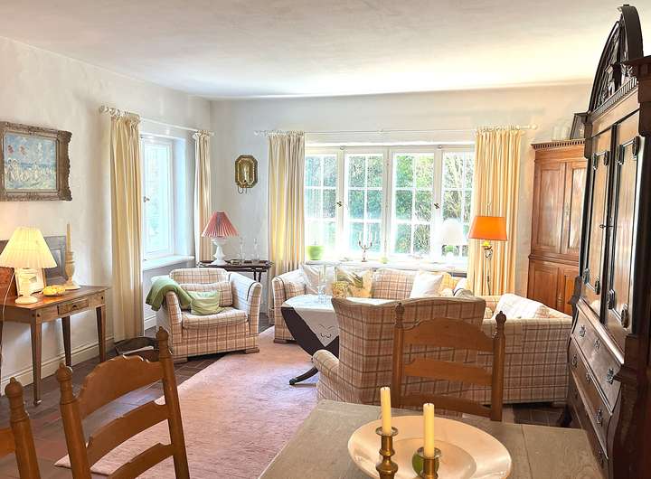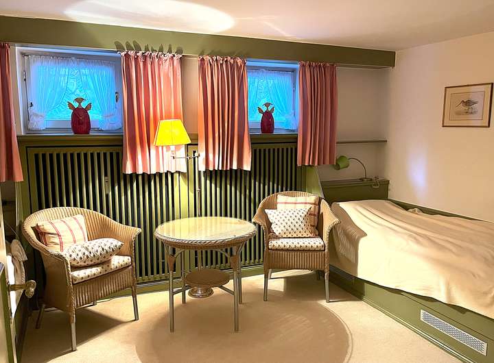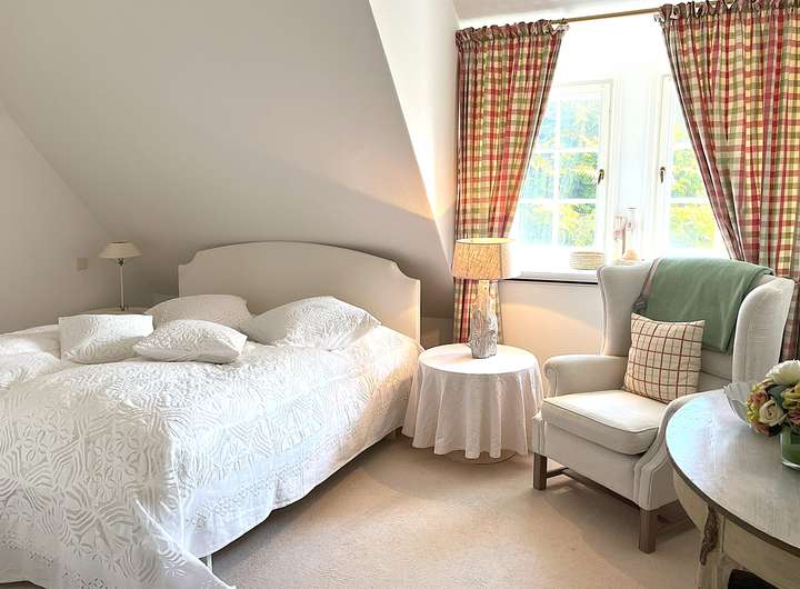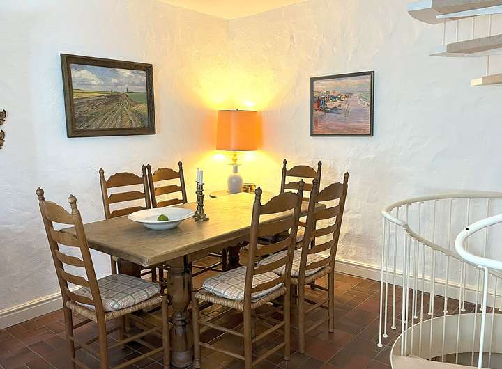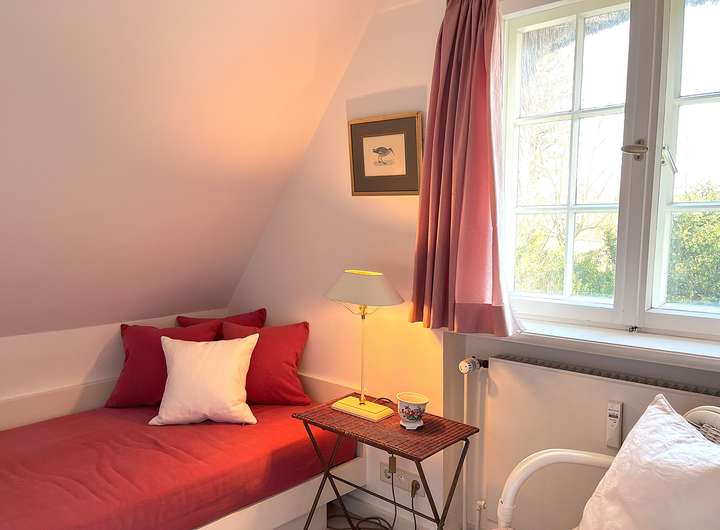 Am Ende einer langgezogenen Zufahrt befindet sich das charmante Domizil unter Reet. Versteckt und uneinsehbar lädt der idyllische Garten zum Verweilen unter freiem Himmel ein. Dennoch liegen der Ortskern, die Wiesen und Felder gen Sylter Osten sowie das Wattenmeer nur wenige Gehminuten entfernt. Unter dem Reetdach selbst verbergen sich auf drei Ebenen ausreichend Platz und Raum für entspannte Urlaubstage im Kapitänsdorf.