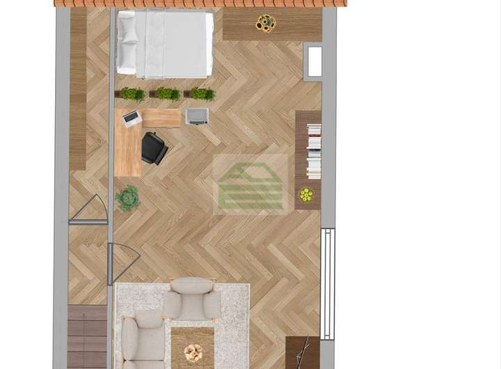 Ein Geschoss darüber im Dachgeschoss befindet sich das ausgebaute Studio auf 2 Ebenen. Hier können sie sich nach Ihren Vorlieben einrichten - egal ob als Büro/Arbeitszimmer, Gästezimmer, Jugendzimmer oder Hobbyraum - das Dachgeschoss bietet genügend Platz.