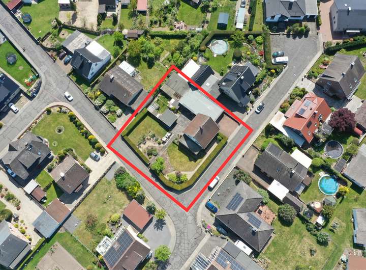 * Ein Einfamilienhaus mit Anbau, das entweder saniert und neu belebt oder durch einen Neubau ersetzt werden kann.