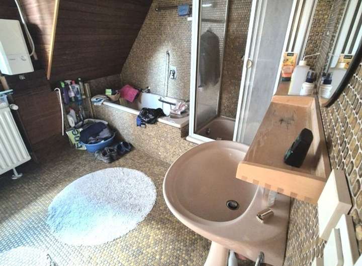 Gas-Brennwerttherme (2006, zuletzt gewartet 2024), Heizkörper aus dem Jahr 1996, Warmwasserspeicher ca. 2020 erneuert, Heizungsleitungen von 1994 und Wasserleitungen aus den 1980er-Jahren.