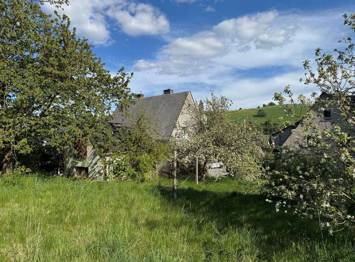 Zum Haus gehört ein schönes ca. 950 m² großes Grundstück. Dieses verfügt über ausreichend Grünfläche und ist mit einigen Bäumen und Sträuchern bewachsen. Auf dem Grundstück befindet sich auch eine Garage.