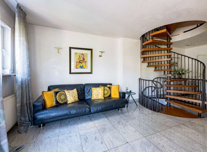 Im 2. Obergeschoß und Dachgeschoß befindet sich eine 3-Zimmer-Maisonettewohnung mit ca. 75,29 Quadratmetern mit einer schönen Loggia und Ausblick. Die Wohnung im 2. Obergeschoss ist momentan vermietet (€ 850,- p.a.). Die Wohnung im Erd-und Obergeschoß wird frei übergeben.