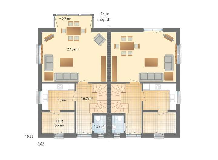 - massive Klinkerfassade im Standard enthalten, auf Wunsch auch mit Holz- oder Putzfassade lieferbar