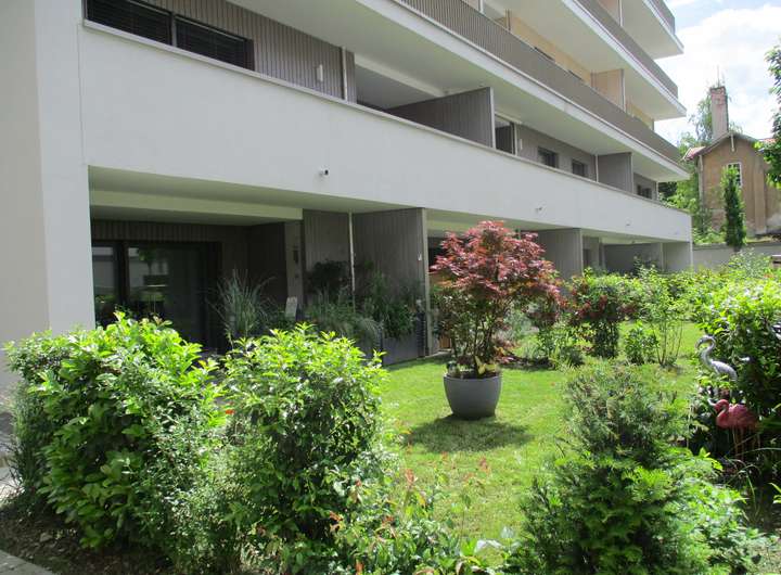 Diese 2-Zimmer-Terrassenwohnung mit Gartensondernutzung befindet sich im Erdgeschoss eines neu gebauten Mehrfamilienhauses in guter Lage in der Nähe des Königlichen Kurparks und der Fußgängerzone.