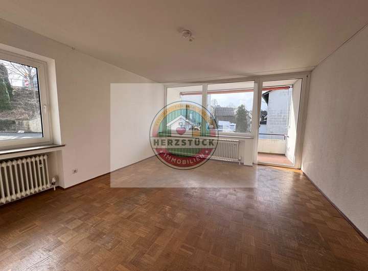 Der helle Wohnbereich lädt zum Verweilen ein und bietet Zugang zur gemütlichen Loggia, die sich perfekt für entspannte Stunden im Freien eignet. Die großzügige Raumaufteilung schafft ein angenehmes Wohngefühl mit ausreichend Platz für individuelle Gestaltungsmöglichkeiten.