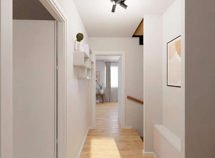 Massiv gebaut für ein dauerhaft gutes Wohngefühl, dieses moderne Doppelhaus bietet Ihnen auf drei Etagen maximalen Komfort. Im Erdgeschoss erwartet Sie ein großzügiger Wohnbereich mit offener Küche. Die angrenzende Terrasse ist ideal für entspannte Abende im Freien. Ein praktisches Gäste-WC und eine Nische für Ihre Garderobe runden das Erdgeschoss ab. Im Obergeschoss erwarten Sie zwei helle und freundliche Zimmer. Das moderne Tageslichtbad mit Badewanne und bodengleicher Dusche schafft eine natürliche Atmosphäre. Homeoffice, ein weiteres Kinderzimmer oder kreativer Raum – im ausgebauten Dachgeschoss finden Sie Platz, um sich zu entfalten. Für weiteren Stauraum nutzen Sie den großzügigen Keller.