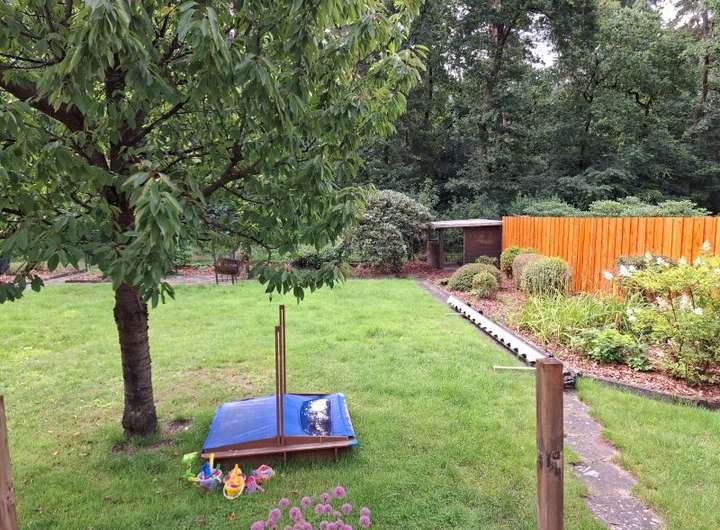 Das große Grundstück grenzt auf der Rückseite an einen kleinen Wald. Die Lage ist sehr ruhig. Das Zentrum, Schulen, Kindergärten und Geschäfte sind in wenigen Minuten erreichbar.