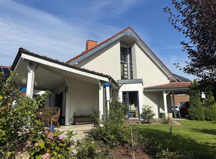 Zum Verkauf steht dieses besondere Einfamilienhaus am Ende einer ruhigen Siedlung im Bremerhavener Ortsteil Schierholz. Das Haus wurde ca. 1994 erbaut und liegt auf einem ca. 902 m² großen Eckgrundstück. Das Haus wird noch in diesem Herbst mit einer neuen Wärmepumpe ausgestattet, die Ihnen die Sorgen um das Heizen der Zukunft abnimmt. Weiteres Highlight des Hauses sind die 4 Glaserker, die am Badezimmer, dem Windfang sowie am Wohnzimmer für besonders viel Licht sorgen und einen einzigartigen Blick in den Garten ermöglichen. Das Wohnzimmer bietet Ihnen knapp 47 m² Wohnfläche. Für angenehme und gemütliche Wärme sorgt der wasserführende Kaminofen, der zusammen mit der neuen Wärmepumpe ein nachhaltiges Heizsystem darstellt. Im Erdgeschoss finden Sie darüber hinaus das Badezimmer mit Dusche und Badewanne sowie die Küche, ein Gäste WC und ein individuell nutzbares Zimmer. Im ausgebauten Dachgeschoss liegen derzeit 2 weitere Zimmer, ein Duschbad sowie eine offene Galerie mit 4 Balkonen über den Erkern. Das offene Zimmer kann ohne großen Aufwand in ein weiteres Schlafzimmer umgewandelt werden und ein Schlafzimmer zur Küche gemacht werden, sodass dieses Haus auch als Mehrgenerationen- bzw. Zweifamilienhaus bewohnt werden kann. Alle Anschlüsse, insbesondere zur Küche, sind auch im zweiten Geschoss vorbereitet. Highlight des Dachgeschosses sind die Fenster und Decken, die bis unter das Dach für besonders große Räume sorgen. Insgesamt stehen Ihnen ca. 167 m² Wohnfläche zur Verfügung, die durch weitere Nutzfläche im Vollkeller ergänzt wird. Hier finden Sie den Heizraum, eine Werkstatt, Waschküche und Hobbyraum. Aus dem Keller gelangen Sie komfortabel in den Garten. Die Einbauküche rundet das Angebot ab und ist im Kaufpreis enthalten. Suchen Sie ein besonderes Zuhause für sich und Ihre Familie? Dann kontaktieren Sie mich für eine Besichtigung.