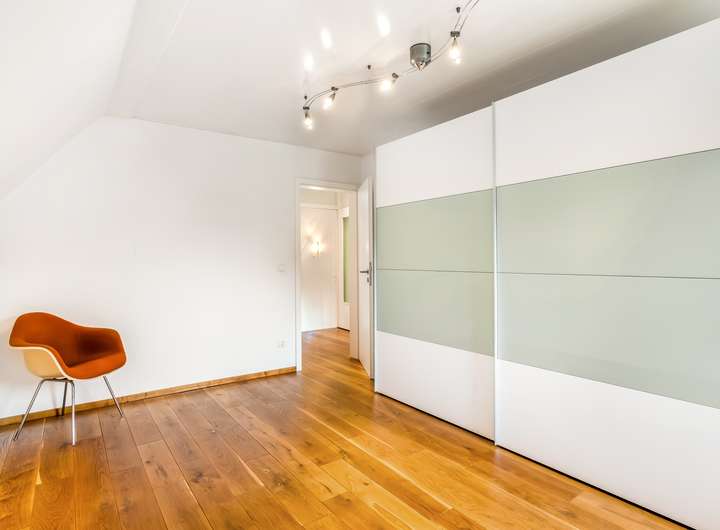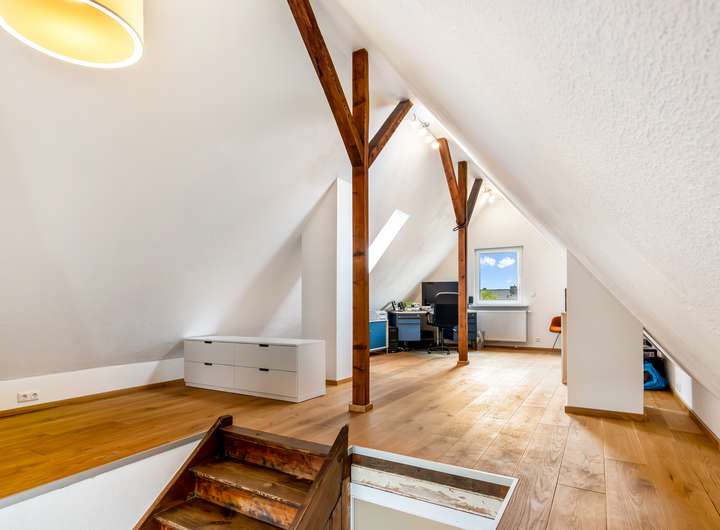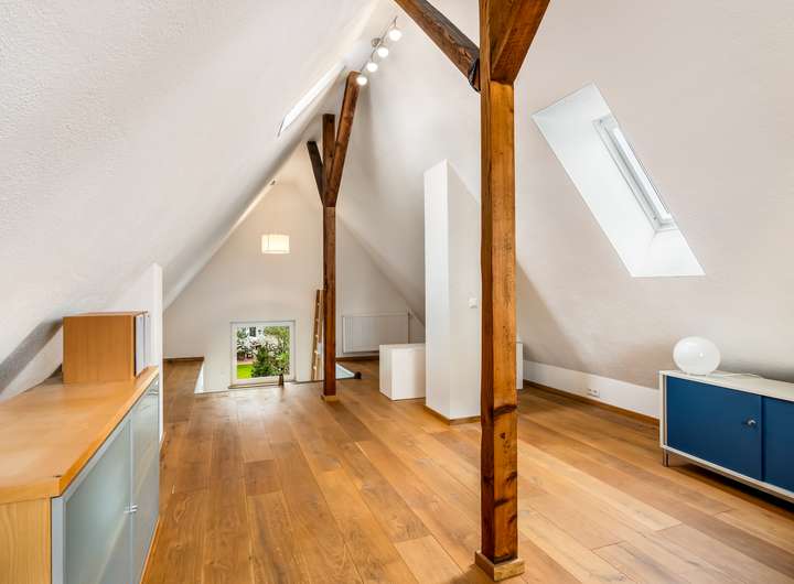 Dieses liebevoll modernisierte Einfamilienhaus aus den 1930er-Jahren vereint historischen Charme mit zeitgemäßem Wohnkomfort und bietet der ganzen Familie ein behagliches Zuhause. Auf drei Ebenen erwartet Sie eine durchdachte Raumaufteilung mit viel Platz für individuelle Wohnbedürfnisse. Das Herzstück des Hauses ist das großzügige Wohnzimmer mit Kamin, das dank zweier Eingänge flexibel genutzt und sogar in zwei Räume geteilt werden kann. Die moderne, weiße Küche im Erdgeschoss lädt zum gemeinsamen Kochen ein, während zwei stilvolle Bäder – eines mit begehbarer Dusche, das andere mit Badewanne – den Wohnkomfort unterstreichen. Der Echtholz-Eichenparkettboden im gesamten Haus verleiht den Räumen eine warme und elegante Atmosphäre. Das Haus wurde in den letzten Jahren umfassend renoviert: Dach, Elektrik, Heizung, Fenster, Bäder, Fassade, Dachboden sowie Hof wurden modernisiert. Außerdem sorgen eine effiziente Luft-Wasser-Wärmepumpe und eine Photovoltaikanlage für zeitgemäße Energieeffizienz. Dieses Haus ist ideal für Familien, die Wert auf Stil, Komfort und eine hochwertige Ausstattung legen. Ein geschichtsträchtiges Gebäude, das mit viel Liebe zum Detail und moderner Technik in ein zeitgemäßes Wohlfühlzuhause verwandelt wurde.