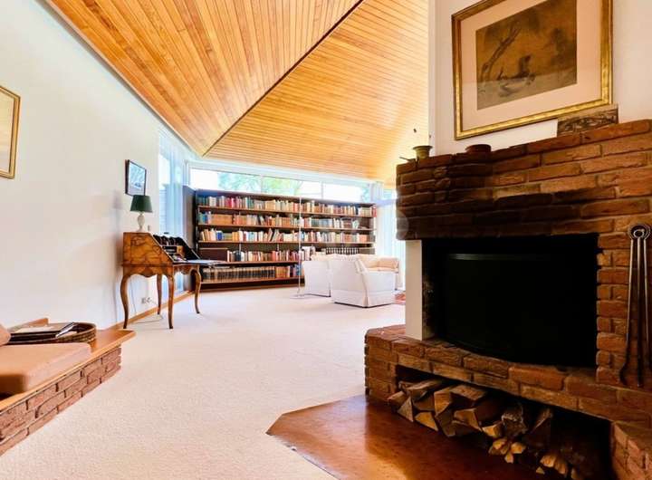 Der Flur führt Sie in eine funktionale Küche, während der fantastische Wohn- und Essbereich das Herzstück des Hauses bildet. Mit bis in den First geöffneten Decken, bodentiefen Fenstern, die den Blick allseits auf die Terrasse und den Garten freigeben, sowie einem gemütlichen Kaminbereich, entsteht ein einzigartiges Ambiente.