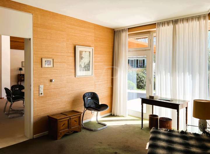 Die Immobilie präsentiert sich in einem sehr gepflegten Zustand. Zeitgemäße Gestaltungsmöglichkeiten (Baujahr 1971) würden sich anbieten, um der Villa wieder angemessenen Glanz zu verleihen. Dabei können Sie Ihren persönlichen Geschmack einbringen und eigene Vorstellungen verwirklichen. Alternativ könnte auch eine Neubebauung in Betracht gezogen werden. Dazu weist der rechtskräftige Bebauungsplan 102 1V folgende Ausnutzung aus: reines Wohngebiet, offene Bauweise mit maximal zwei Wohneinheiten, einem Vollgeschoss und Dach, die Grundflächenzahl lautet 0,2.