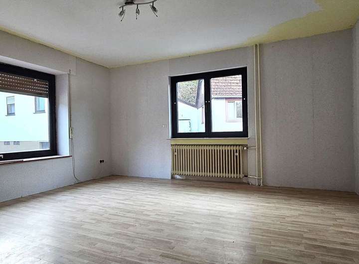 1973 wurde durch massive Umbaumaßnahmen aus vorhandener Scheune (Baujahr unbekannt) das heutige Gebäude errichtet, bestehend aus Erdgeschoss, Obergeschoss, Dachgeschoss und Spitzboden (nicht ausgebaut), Wohnfläche ca. 109 m², Nutzfläche ca. 46 m², sanierungsbedürftig, Garage und separater Stellplatz im Kaufpreis enthalten, kein Garten vorhanden. Verkaufsgebäude sowie zwei weitere Wohngebäude mit einer abgeschlossenen Wohnung je Gebäude gem. WEG.