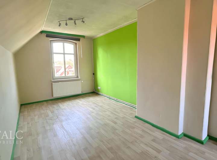 Im Obergeschoss befinden sich ein großes Schlafzimmer sowie ein weiteres Zimmer, das sich flexibel als Kinder-, Arbeits- oder Gästezimmer nutzen lässt. Besonders hervorzuheben ist das helle, großzügig geschnittene Badezimmer mit Tageslicht, Dusche und Badewanne. Eine Treppe führt weiter ins Dachgeschoss, wo zwei weitere Zimmer sowie eine praktische Abstellkammer zusätzlichen Raum bieten.