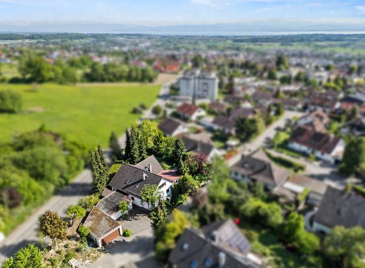 Das Wohnhaus liegt in bevorzugter Höhenlage am Gehrenberg in Markdorf.