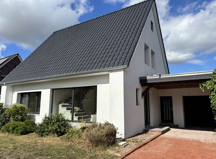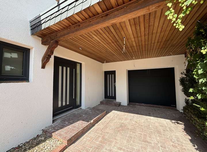 Dieses im Jahr 2025 kernsanierte Einfamilienhaus überzeugt durch eine moderne und auch aus energetischer Sicht hochwertige Ausstattung. Dank der zudem beliebten und überaus ruhigen Wohnlage ist die Immobilie damit für Paare oder kleine Familien ideal. Ursprünglich ca. im Jahr 1964 erbaut, wurde das Haus umfassend kernsaniert, sodass es den heutigen Ansprüchen entspricht und durch seine helle und freundliche Atmosphäre überzeugt. Auf ca. 154 m² Wohnfläche bietet das Haus angenehmen Wohnkomfort. Das Raumkonzept der Immobilie umfasst einen Wohn- und Essbereich, ein großes Schlafzimmer mit Ankleide, ein Badezimmer, ein Gäste-WC sowie ein Büro. Durch die großzügige Aufteilung lässt sich im Wohn- und Essbereich optional ein zusätzliches Zimmer integrieren - ideal als Kinderzimmer. Der Wintergarten schließt sich direkt an den Wohnbereich an und verbindet diesen auf praktische Weise mit dem Garten. Ein weiteres Merkmal der Immobilie ist die installierte Fußbodenheizung, die in Verbindung mit der Wärmepumpe eine effiziente Heizlösung darstellt. Das Haus ist teilunterkellert und bietet mit zwei Kellerräumen Platz für praktischen Stauraum. Für Fahrzeuge stehen eine geräumige Garage und ein Carport zur Verfügung. Das ca. 798 m² große Eigentumsgrundstück bietet mit einem großzügigen Gartenbereich vielfältige Möglichkeiten, den idyllisch eingewachsenen Außenbereich zu nutzen. Haben wir Ihr Interesse geweckt? Dann freuen wir uns jetzt auf Ihre Kontaktaufnahme! Hinweis: Ein Energieausweis lag bei Anzeigenerstellung noch nicht vor und wird spätestens mit Fertigstellung der Kernsanierung nachgereicht.