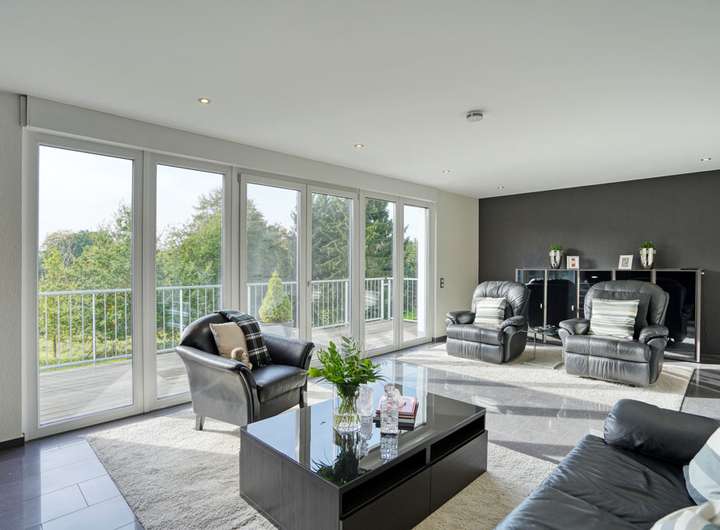 - Kunststofffenster mit 3-fach-Isolierverglasung und mit elektrisch bedienbaren Rollläden und Fliegengittern