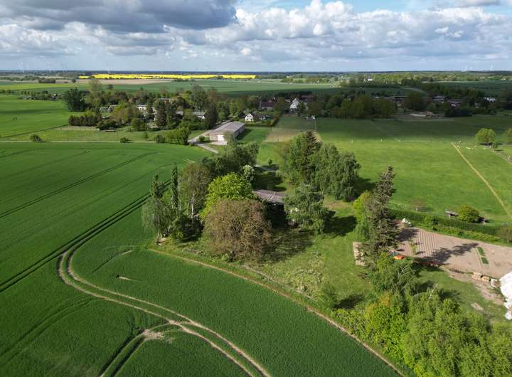 Auf der gegenüberliegenden Straßenseite befindet sich zusätzlich eine landwirtschaftlich nutzbare Fläche von circa 20.000 m², die bei Bedarf separat gepachtet werden kann – ideal beispielsweise als Weideland für Pferde.