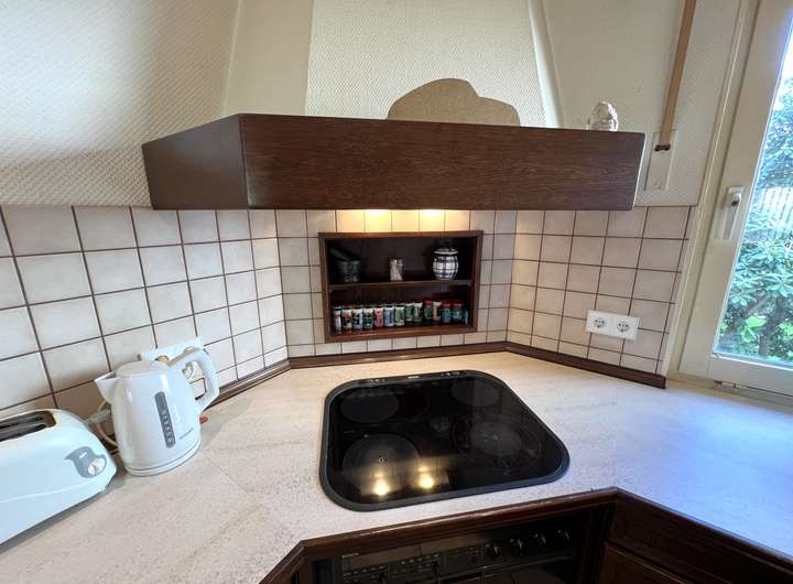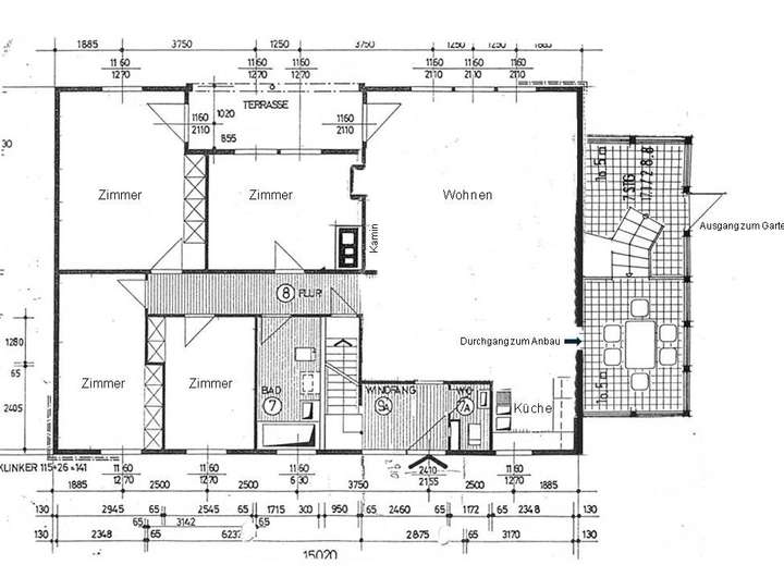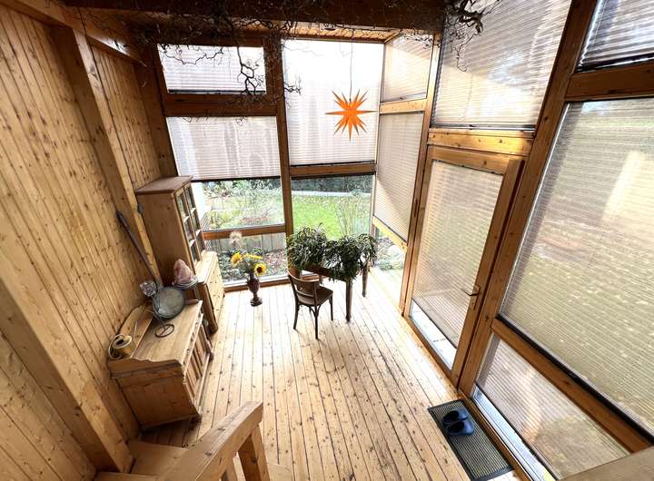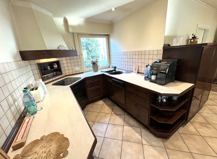Fenster und Türen - Kellerfenster in der Hauptsache als Kunstofffenster mit Wärmeschutzverglasung, teilweise schmiedeeiserne Vergitterung - Hauptbaukörper in der Hauptsache Holzrahmenfenster (teilweise mit Rollläden), im Bad (EG) auch neuwertige Kunstofffenster, im Dachgeschoss Holzrahmenfenster/Fenstertüren/große Fensterfront mit Schiebeelement (Wärmeschutzverglasung) mit einzigartigem Blick ins Landschaftsschutzgebiet - Massive Haustüranlage (Holzkonstruktion) mit verglastem Seitenteil (Drahtglas) - Doppelgarage mit funkgesteuertem, elektrifizierten Sektionaltor mit Echtholzkassetten, Innentüren Holz überwiegend in wertiger Qualität Fußböden - Kellergeschoss überwiegend Fliesenbelag (mittelformatig) und Auslegeware - Hauptgebäude verklebte Holzkassetten, Auslegeware, Fliesenbelag und Vinylboden. - Eingangsbereich mittelformatiger Fliesenbelag - Wintergarten Dielenboden - Dachterrassenbereich Bangkirai-Dielen - Doppelgarage und zusätzliche Abstellfläche Pflasterbelag Offene Einbauküche komplett mit technischen Geräten Sanitär - Bad im EG mit bodenebener Dusche (Echtglastrennwand), großformatige Wand- und Bodenfliesen (beige/grau) - Bad DG mit WC und Badewanne, allseitig Wandfliesen (mittelformatig), Bodenbelag Vinyl Heizung - Gas-Brennwertgerät (Brötje) mit Brauchwasserspeicher - Kamin mit Heizkassette Terrasse/ Garten - Terrasse mit Sonnenmarkise - Brunnen für Gartenpumpe - Unterirdische Schlauch-Bewässerungsanschlüsse - Gartenbeleuchtung - Kleiner Teich